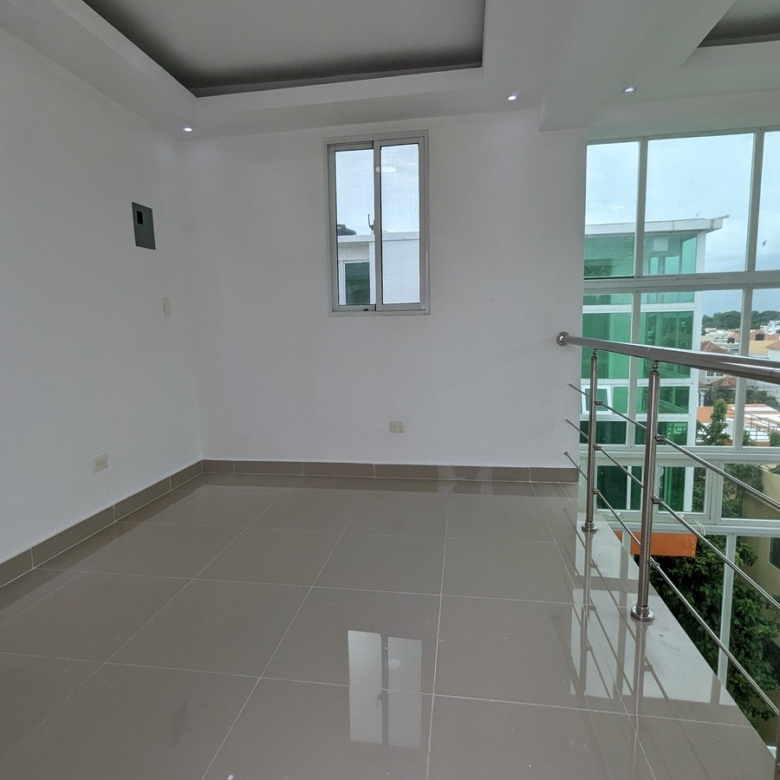 Este penthouse de dos niveles, ubicado en el cuarto y quinto piso, ofrece una vista excepcional que se extiende hacia las áreas verdes de Vista Hermosa, un lugar donde la naturaleza y la comodidad se fusionan. Lo que hace que este apartamento sea verdaderamente especial son sus impresionantes ventanales de cristal en la sala, que inundan de luz natural cada rincón y te conectan con la belleza exterior. Además, la magnífica terraza te permite disfrutar de todo el esplendor de este exclusivo sector, rodeado de verdor y serenidad.