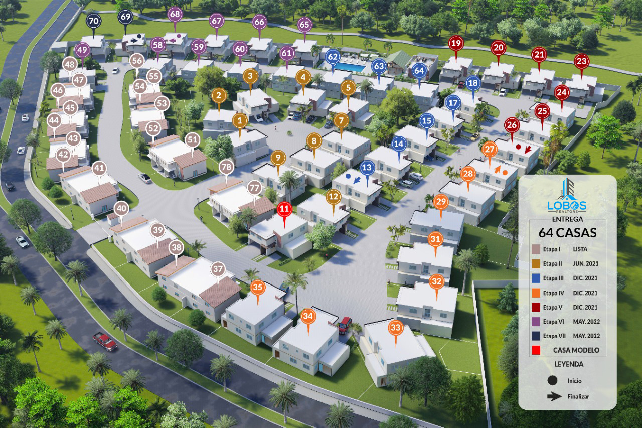 Residencial de 64 casas. constituido en 4 etapas. con terrenos entre 228 a 427 metros de terreno 240 construcción